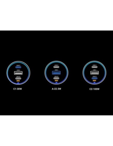 Dvojni izhod: C1+C2: 30W+100W, C1+A: skupno 5V4,8A、C2+A:100W+22,5W