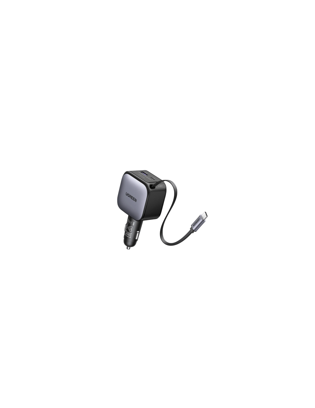 Model UGREEN 55212 prinaša visoko zmogljivost in praktičnost za uporabo v avtomobilu. Vgrajen izvlečni USB-C kabel dolžine do približno 0,7 m omogoča fleksibilno polnjenje mobilnih naprav na sovoznikovem ali zadnjem sedežu, brez zmešnjave kablov. Poleg njega polnilnik ponuja 1 × USB-C priključek in 1 × USB-A priključek, s katerima lahko hkrati polnite do tri naprave. Skupna izhodna moč znaša do 60 W, posamezno vrata pa omogočajo do 30 W izhodne moči. Podpora za številne protokole hitrega polnjenja (PD 3.0, PPS, QC 3.0/2.0, SCP, FCP, AFC in Apple 5 V/2.4 A) pomeni široko združljivost s telefoni, tablicami in drugimi napravami. Ohišje iz ognjeodpornega materiala in zaščitni sistemi pred prekomernim tokom, napetostjo in kratkim stikom zagotavljajo varno uporabo med vožnjo.