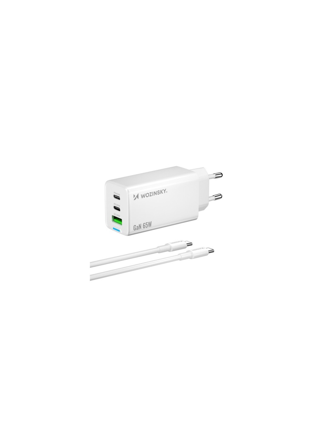 Wozinsky GaN 65W Charger with 2xUSB-C USB Ports with 65W CC Cable - White