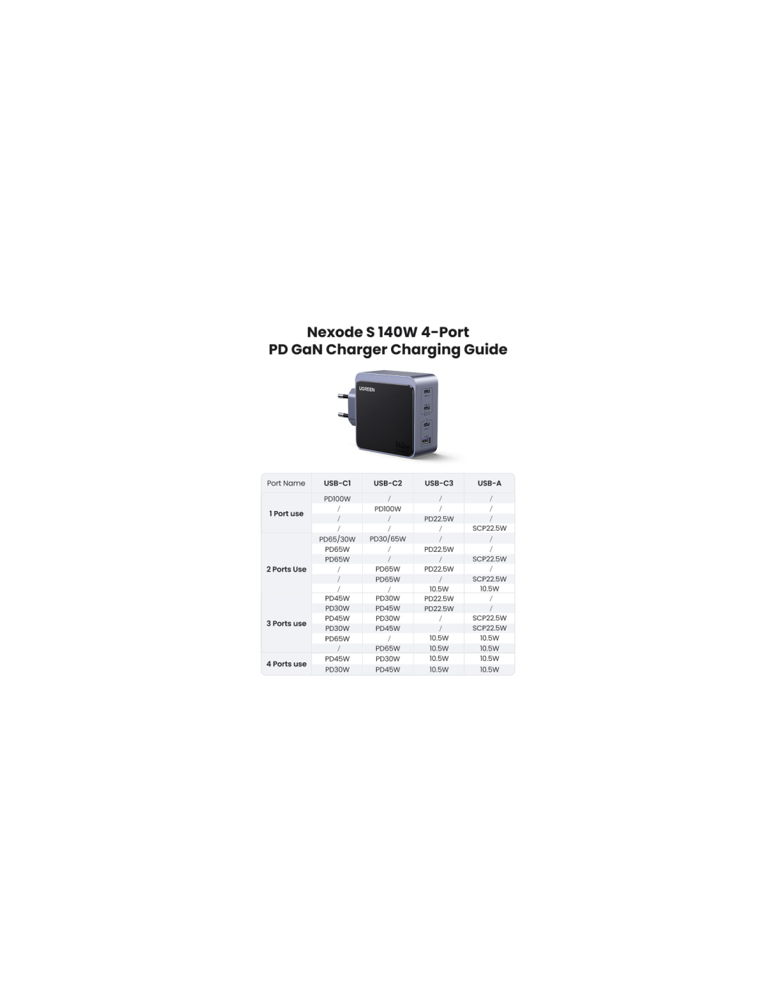 UGREEN 45575 je zmogljiv 140 W GaN polnilnik s štirimi izhodi, zasnovan za profesionalno uporabo in sodobna delovna okolja. Omogoča hkratno polnjenje prenosnikov, tablic in drugih USB-naprav z visoko skupno izhodno močjo ter učinkovito razporeditvijo energije med priključki. Zaradi GaN tehnologije polnilnik ohranja kompaktno obliko, visoko učinkovitost in stabilno delovanje tudi pri večjih obremenitvah.