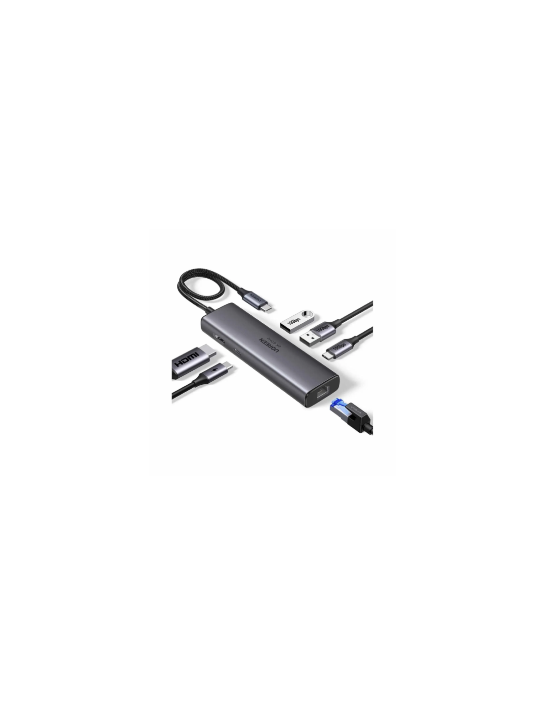 UGREEN 45000 je elegantna in zmogljiva 6-v-1 USB-C razširitvena postaja, ki vključuje HDMI 4K@60 Hz izhod, 2 × USB-A 3.2, 1 × USB-C 3.2, RJ-45 gigabitni Ethernet ter zunanji napajalni vhod PD do 100 W — idealna za prenosnike in delovne postaje.