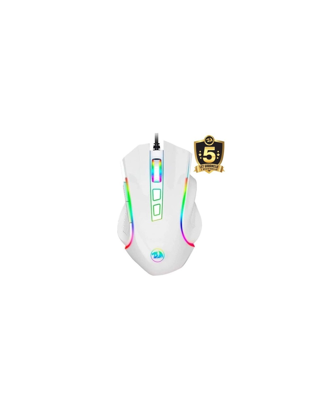 Redragon M602-RGB Griffin RGB je žična igralna miška izdelana za igralce računalniških iger. Ergonomska igralna miška ima RGB osvetlitev in do 7200 DPI (uporabniško nastavljiva 800/1200/1600/2400/7200 DPI). Visoko natančni senzor zagotavlja izjemno natančnost, medtem ko mikro stikala igralnega razreda zagotavljajo dolgo življenjsko dobo, večjo vzdržljivost in izjemno odzivnost, kar vam daje še večjo prednost pred konkurenco.