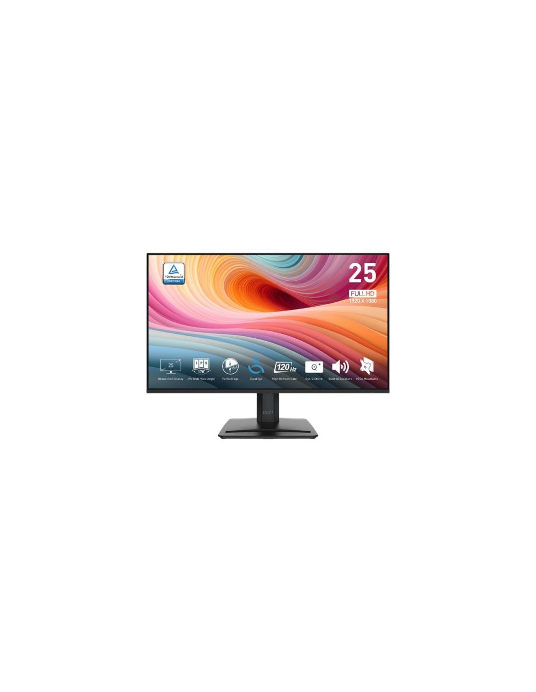 MSI PRO MP251 E2 je 24,5-palčni poslovni monitor, zasnovan za vsakodnevno uporabo v pisarni ali doma. Ponuja jasen Full HD prikaz, široke kote gledanja in tehnologije za zaščito oči, ki zmanjšujejo utrujenost pri dolgotrajnem delu. Elegantna oblika se popolnoma prilega modernemu delovnemu okolju.