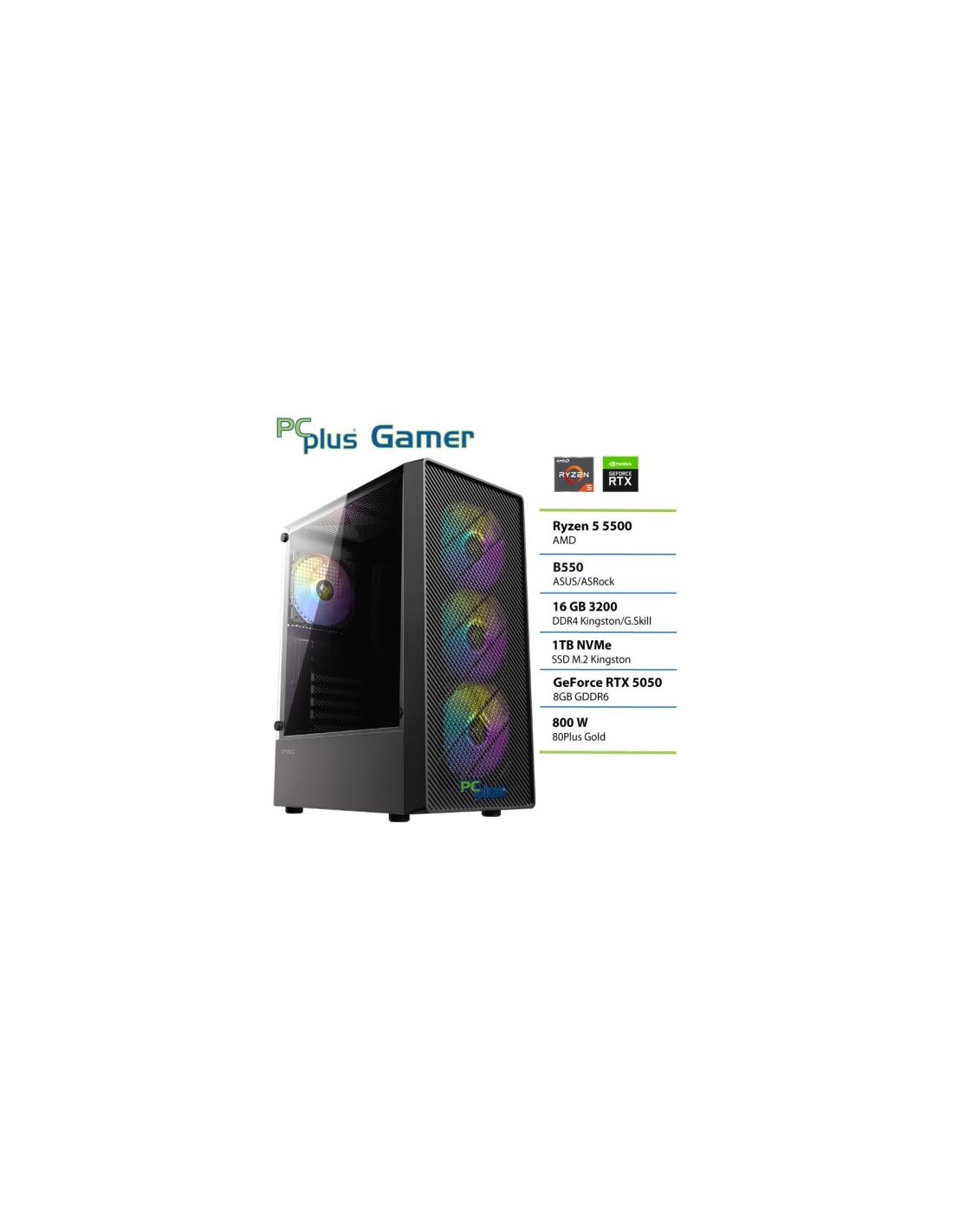 PCPLUS Gamer Ryzen 5 5500 16GB 1TB GeForce RTX 5050 8GB gaming namizni računalnik