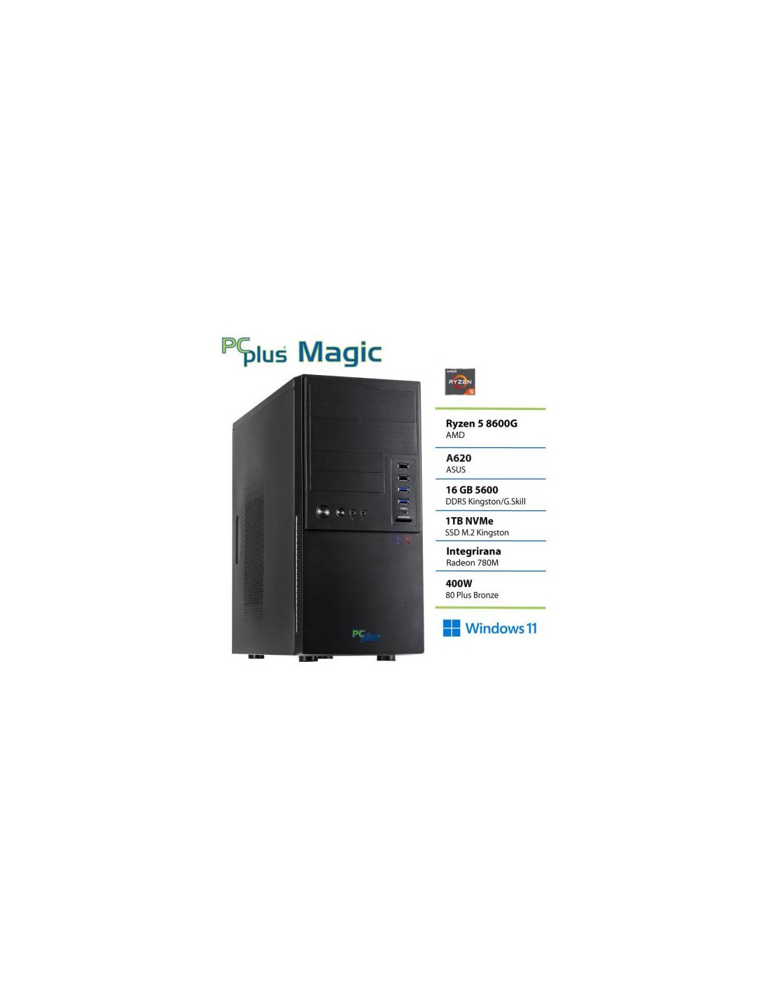 PCPLUS Magic Ryzen 5 8600G 16GB 1TB SSD miška tipkovnica Windows 11 Home namizni računalnik