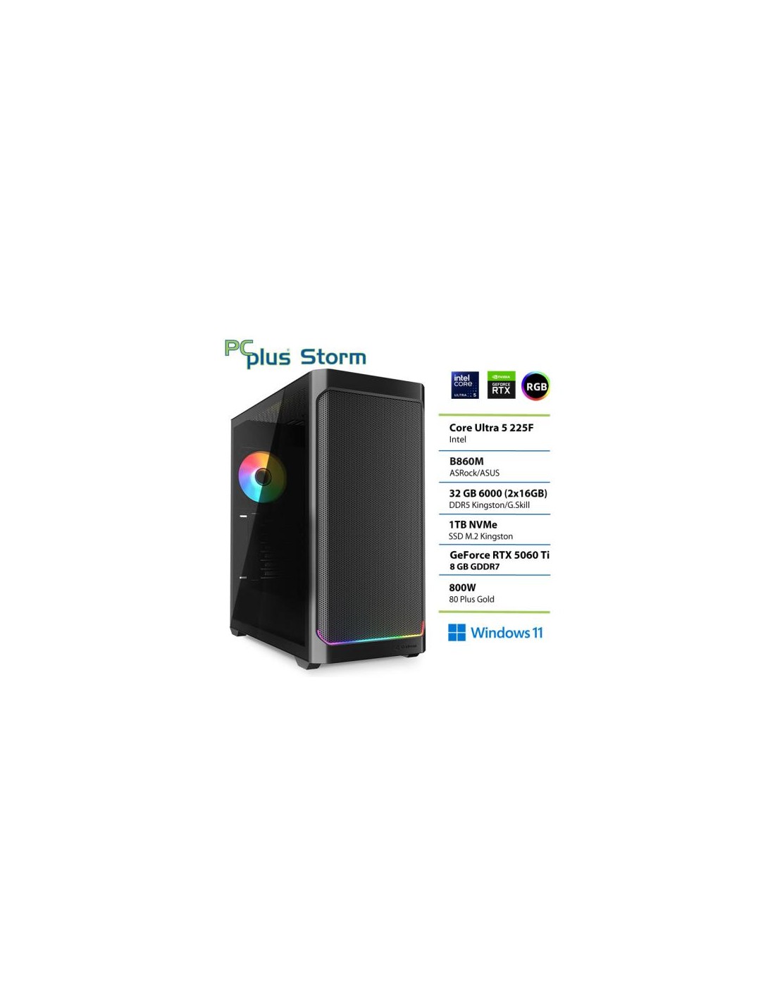 PCPLUS Storm Ultra 5 225F 32GB 1TB NVMe SSD GeForce RTX 5060 Ti 8GB Windows 11 Home gaming namizni računalnik