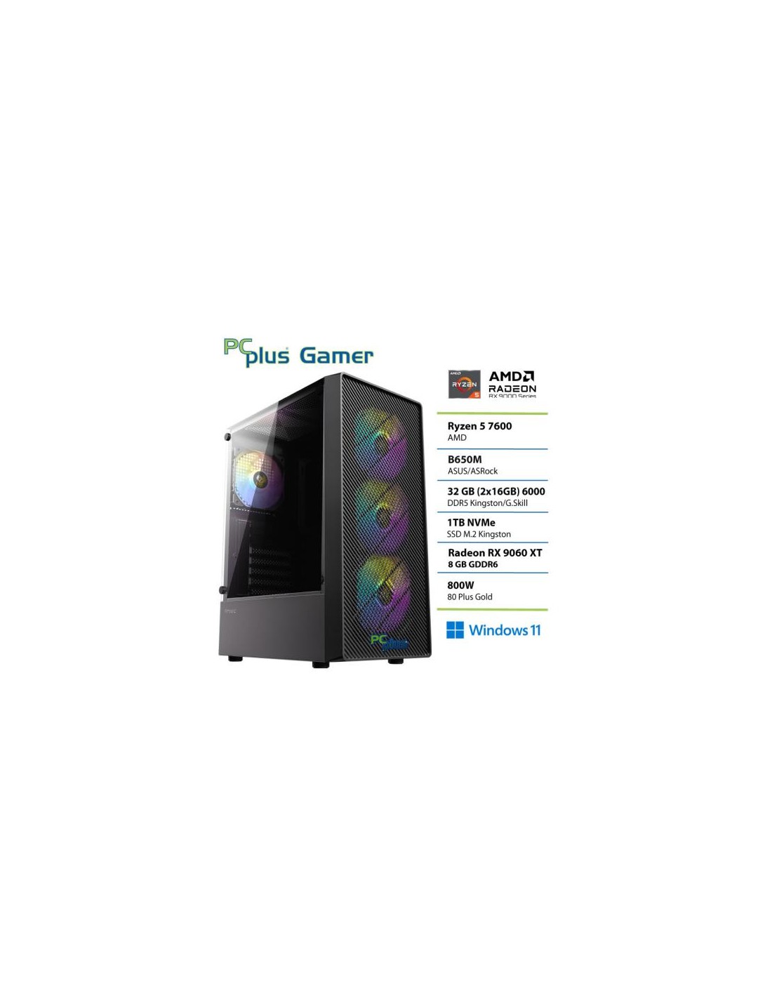 PCPLUS Gamer Ryzen 5 7600 32GB 1TB Radeon RX 9060 XT 8GB Windows 11 Home gaming namizni računalnik