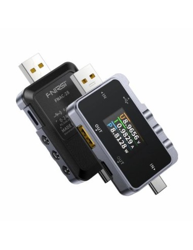 FNIRSI FNAC-28 je profesionalni tester USB napajanja, zasnovan za merjenje napetosti, toka, moči ter zmogljivosti baterij pri napravah, kot so telefoni, napajalniki, USB pomnilniki in powerbanki. Podpira dvosmerno zaznavanje toka do 6,5 A in obsega napetosti od 4 do 24 V, kar omogoča testiranje napajalnih in porabniških naprav.
