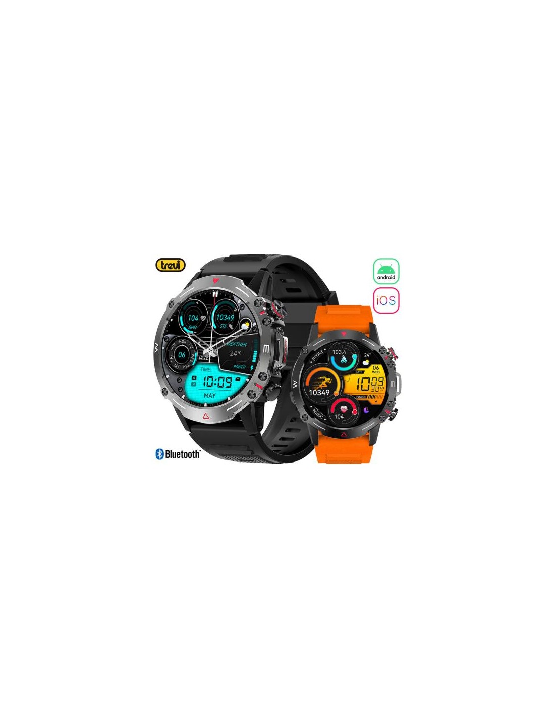 Pametna ura Trevi T-FIT 510 s funkcijo Bluetooth klicanja je interaktivna ura s številnimi funkcijami. Na njenem velikem 1,43" (3,63 cm) zaslonu na dotik si je mogoče ogledati vsa obvestila o klicih, SMS-ih in sporočilih iz aplikacij in socialnih omrežij, kot so WhatsApp, Facebook, Instagram... Moška pametna ura je na voljo v atraktivni črni barvi z dodatnim oranžnim paščkom.