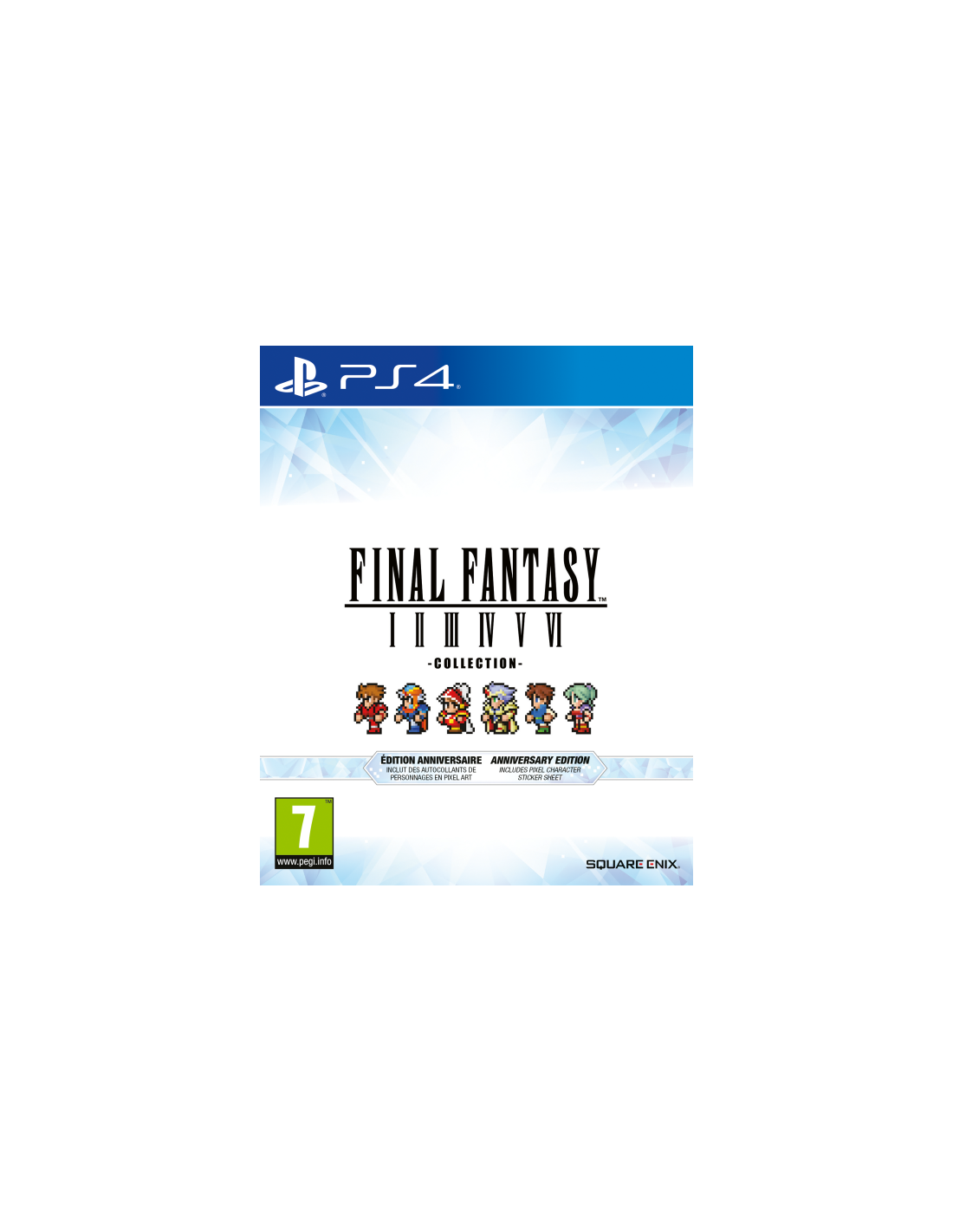 S tem paketom lahko kupite vseh šest iger od FINAL FANTASY 1 do FINAL FANTASY 6 po znižani ceni. Vključuje tudi nalepko z lističem z liki Pixel. Uživajte v univerzalno posodobljeni 2D grafiki pikslov in čudovito preoblikovani zvočni podlagi. Igranje je izboljšano s posodobljenim uporabniškim vmesnikom, dodatki, kot so bestiarij, galerija ilustracij in predvajalnik glasbe, pa omogočajo dodatno potopitev v svet igre.