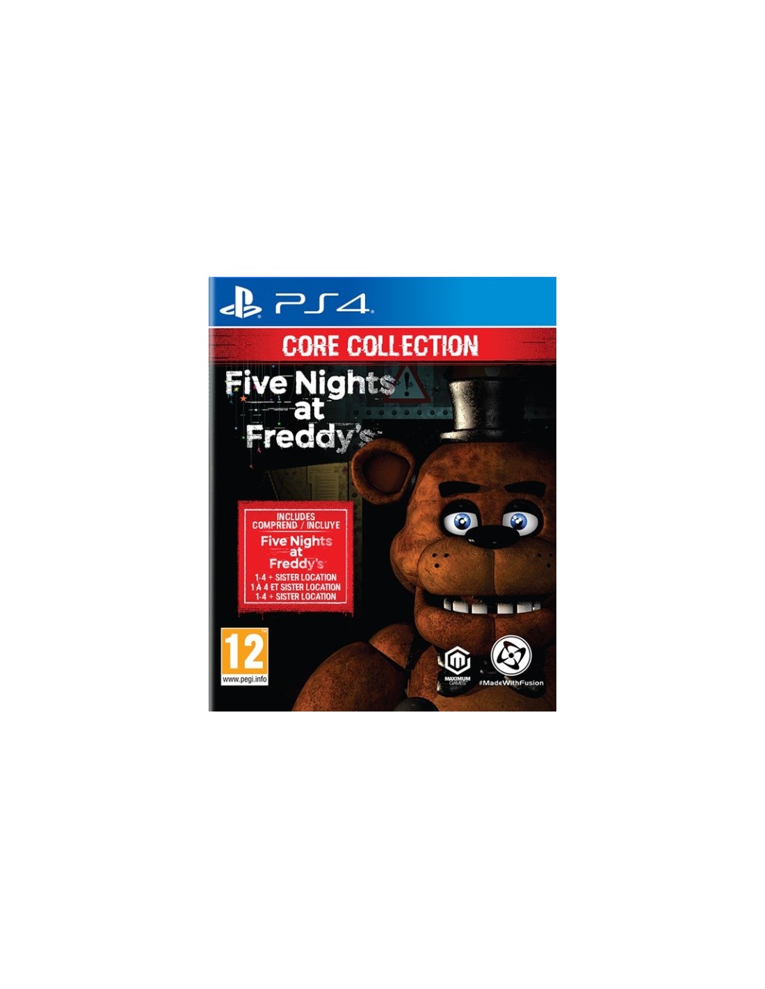Core Collection za PS4 v enem paketu prinaša prvih pet iger iz fenomenalno uspešne srhljive serije Five Nights at Freddy’s. V vseh je treba preživeti noč v prostorih, kjer oživljajo pošastne animatronike. Pred njimi se je treba skrivati in previdno ravnati z zalogo elektrike, s katero napajate vrata, luči in monitorje, ki dajejo pregled nad gibanjem krvoločnih robotov. Peterico strašljivih naslovov dopolnjujejo novi konzolni dosežki in trofeje, mogoče pa je vključiti tudi goljufanje.