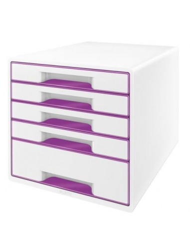 V elegantno urejeni pisarni vam zagotovo ne sme manjkati Leitz WOW predalnik. Premium predalnik je elegantno modernega videza, dvobarvna kombinacija z visokim sijajem. Pet gladko tekočih izvlečnih predalov z omejevalom proti izpadanju zagotavljajo hitro in učinkovito vlaganje in odlaganje dokumentov. Večji predal omogoča tudi hrambo pisalnega pribora. S predali, ki imajo povsem zaprto prednjo stranico preprečite vdore v zasebnost in poslovne skrivnosti. Nedrseče gumijaste noge omogočajo nalaganje do treh predalnikov in s tem velik prihranek prostora. Dimenzije: 287 x 363 x 270 mm.
