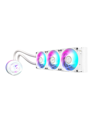 Vodni blok in ventilator imata gradientno osvetlitev, osvetlitev ventilatorja ARGB pa je mogoče sinhronizirati z drugimi napravami AORUS prek GCC (GIGABYTE Control Center)
