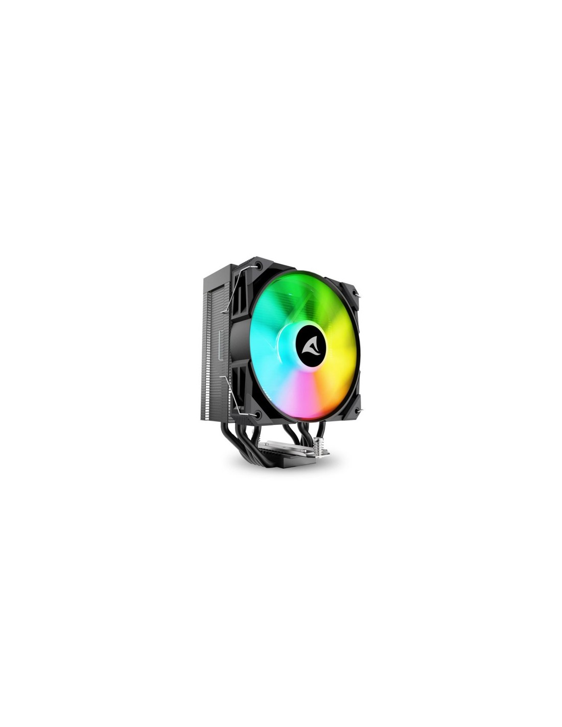 Sharkoon A50 RGB je enostolpni zračni hladilnik za procesor, opremljen s petimi toplotnimi cevmi, ki zagotavljajo učinkovit prenos toplote s procesorja na hladilno rebro. Tudi pri zahtevnih aplikacijah je ta hladilnik zasnovan tako, da zahvaljujoč natančno krmiljenemu 120-mm ventilatorju z RGB-osvetlitvijo, združljivosti z najnovejšimi procesorskimi podnožji ter dobremu TDP-ju 230 W neprekinjeno vzdržuje optimalno temperaturRGB ventilator in učinek neskončnega ogledala