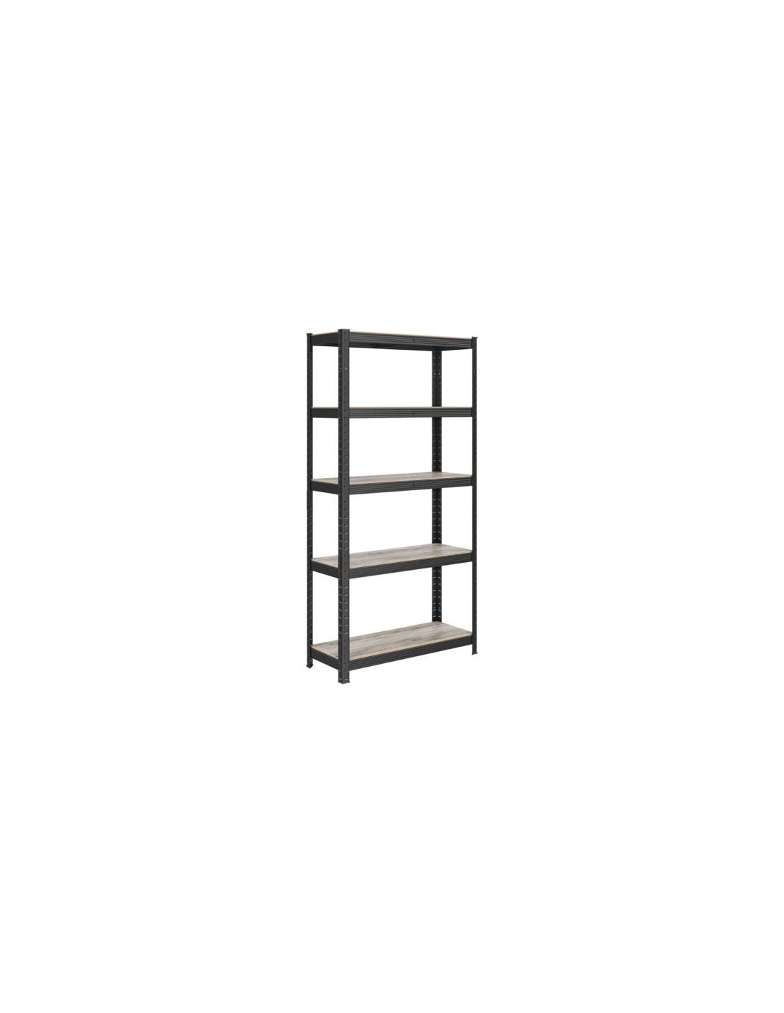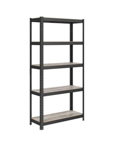 Podrobnosti o izdelku:Barva: naravna črnaMaterial: prašno lakirano jeklo, MDF (vlaknena plošča srednje gostote)Velikost posamezne police: 150 x 75 x 30 cm (v x d x š)Teža posamezne police: 8,1 kgMaksimalna statična nosilnost posamezne police: 120 kg