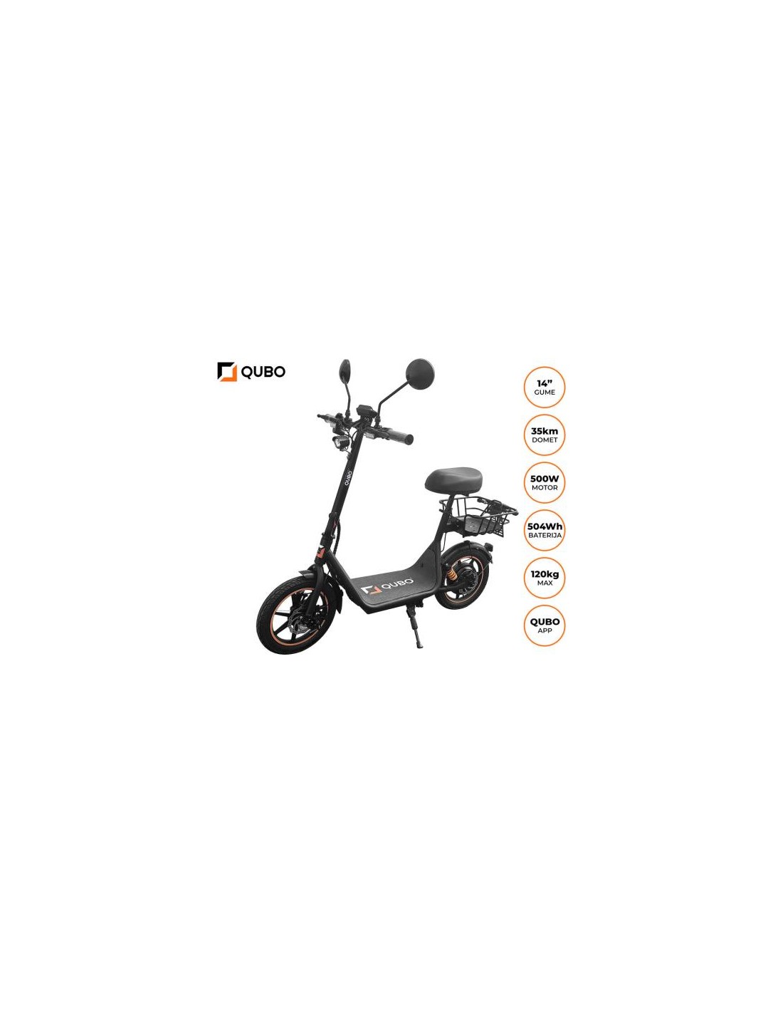 • Aplikacija QUBO GO - Aplikacija QUBO GO uporabnikom omogoča nadzor nad funkcijami vozila neposredno iz pametnega telefona. Spremljate lahko podatke, kot so hitrost, nivo baterije, kot tudi nastavitve vožnje, kar bistveno poveča raven udobja in varnosti.