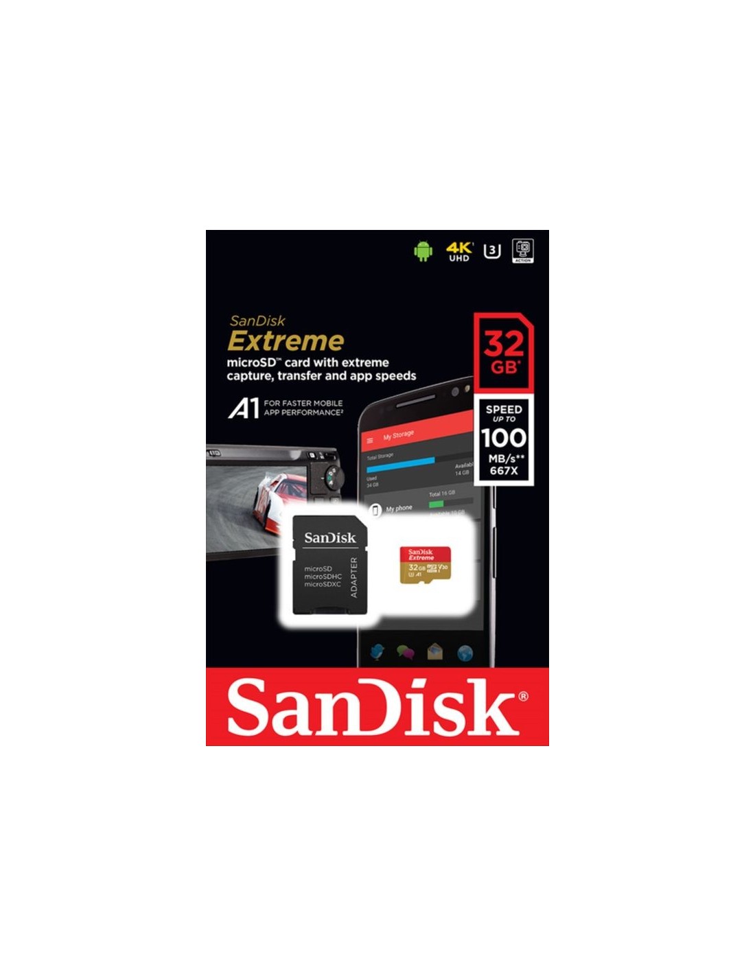 SanDisk 32GB Extreme Micro SDHC A1 CL10 V30 UHS-I U3 100MB/s Mobile spominska kartica + adapter