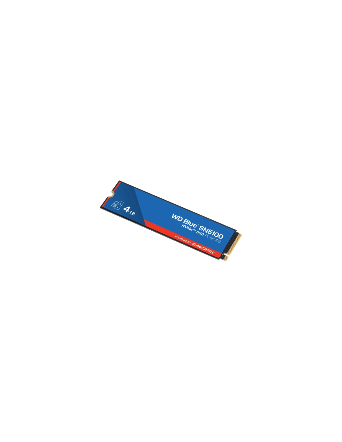 WD Blue SN5100 4 TB (model WDS400T5B0E) ponuja kapaciteto 4 TB v formatu M.2 2280 ter uporablja vmesnik PCIe Gen 4.0×4 (NVMe), kar omogoča izjemno hiter prenos podatkov in odziven čas. SSD uporablja napredno 3D CBA QLC NAND tehnologijo, vključuje tehnologijo nCache 4.0 za optimizacijo delovanja ter zagotavlja velike hitrosti in učinkovitost pri urejanju videa, ustvarjanju vsebin ali kot sistemski pogon. Zasnovan je za široko uporabniško okolje – od osebnih računalnikov do profesionalnih sistemov, kjer je ključna zmogljivost in zanesljivost.