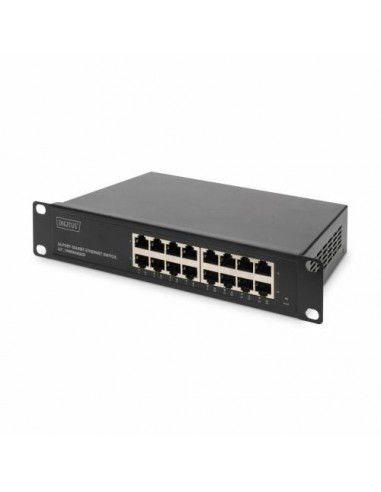 Neupravljano mrežno stikalo DIGITUS nudi šestnajst gigabitnih RJ45 priključkov. Vsi priključki podpirajo funkcijo Auto MDI/MDIX. Stikalo je zasnovano za namestitev v 10" (25,4 cm) komunikacijsko omaro.