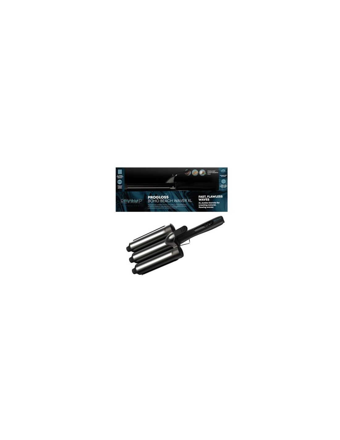 Predstavljamo vam Revamp Progloss Boho Beach Waver XL - napravo za oblikovanje las, ki je namenjena ustvarjanju osupljivih valov. S svojimi velikimi trojnimi valji je ta oblikovalec idealen za dosego drznih in edinstvenih pričesk. Naprava se hitro segreje in je enostavna za uporabo, zahvaljujoč svoji hibridni tehnologiji, ki združuje ionsko in keramično tehnologijo, pa vaši valovi ne bodo le ostali na mestu, temveč bodo tudi sijali. Prepojeni valji z mešanico olj Progloss ™ Revamp, ki vključuje keratin, arganovo in kokosovo olje, bodo vaše lase naredili mehke in svilnate ter jim dali zdrav sijaj. Ta keramični oblikovalec je primeren za vse tipe las, saj lahko izberete temperaturo, ki ustreza vašim lasem, preostalo pa bo opravil oblikovalec las. Poleg tega ima funkcijo samodejnega izklopa po 60 minutah neuporabe in rokavice, ki preprečujejo opekline, kar bo vašo izkušnjo oblikovanja las še bolj poenostavilo od začetka do konca.