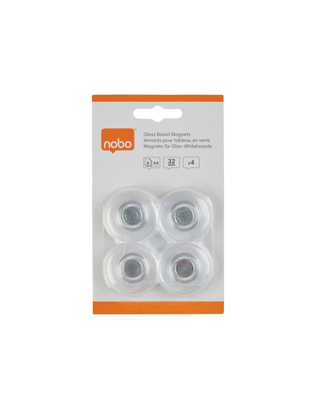 Elegantni prozorni magneti, primerni za urejeno in varno prikazovanje opomb ali sporočil na magnetni stekleni suho brisljivi tabli Nobo. Optimizirani za uporabo na steklu. Pakiranje vsebuje 4 magnete s premerom 32 mm, ki držijo do 6 listov papirja na Nobo magnetnih steklenih tablah.