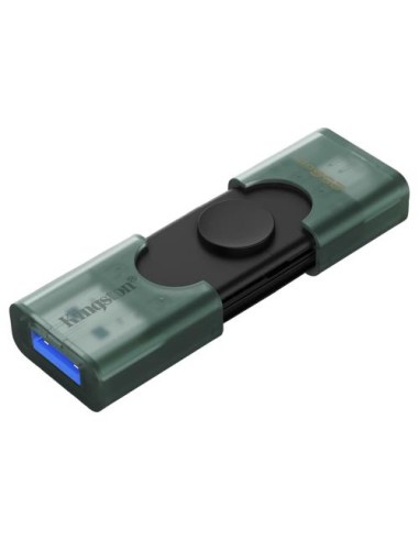 Kingston DataTraveler Duo ima dva priključka USB, ki delujeta z USB Type-A in USB Type-C za maksimalno združljivost. Inovativna zasnova z dvojnim premičnim pokrovčkom naredi pogon eleganten in priročen, saj ga ni mogoče izgubiti. Z DT Duo preprosto dostopate do dokumentov, fotografij, videoposnetkov, glasbe in druge vsebine ter jih prenašate med napravami USB-A in USB-C. Izdelek ima petletno omejeno garancijo, brezplačno tehnič no podporo in legendarno Kingston zanesljivost.