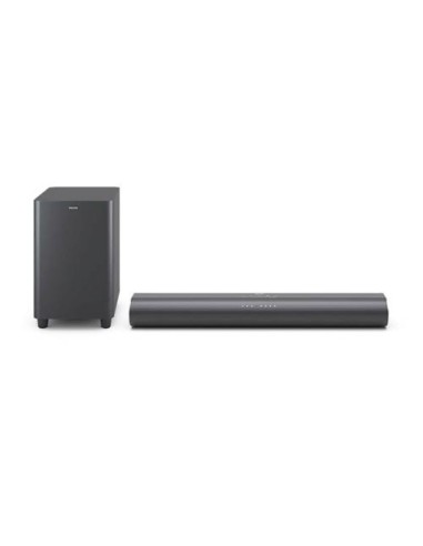 Bogat, mogočen 2.1-kanalni zvok z do 400 W Doživite močan 2.1-kanalni zvok z močjo do 400 W. Potopite se v vsak trenutek – podrobnosti so kristalno čiste, od glasbe in dialogov, do drame in pustolovščin. Upravljate druge naprave, kot je televizor, s tehnologijo Philips EasyLink Soundbar in televizor Philips upravljajte s tehnologijo Philips EasyLink, ki vam omogoča upravljanje televizorja in povezanih naprav s samo enim daljinskim upravljalnikom. Nadzor več naprav z enim dotikom za priročno in enostavno uporabo. Udarni, globoki basi iz brezžičnega nizkotonca Zmogljiv brezžični nizkotonec tega soundbara predvaja bogate in globoke base. Čakajo vas bolj doživeti filmi, glasba in igre, saj lahko v udobju dnevne sobe uživate v zvoku kot iz kinematografa. Kinematografski 3D-zvok s tehnologijami Dolby Atmos, DTS:X, DTS Virtual:X Potopite se v akcijo z visokoločljivim zvokom, ki ga zagotavljajo Dolby Atmos, DTS:X in DTS Virtual:X. Doživite kinematografski 3D-zvok – globlje base, čistejše dialoge in širšo zvočno kuliso v glasbi, filmih, športu in drugih vsebinah – ne da bi morali dodati zadnja zvočnika. Preprosto dodajte svoje najljubše naprave prek povezave Bluetooth 5.4 Na soundbar hitro in enostavno povežite svoje najljubše naprave prek povezave Bluetooth 5.4 ter uživajte v glasbi, akciji in drugih vsebinah. Boljše pretakanje in sinhronizacija zvoka za bolj gladko predvajanje s krajšo zakasnitvijo. Različni načini vhodov, tudi HDMI-eARC, za boljšo sinhronizacijo Ta bogato opremljen soundbar ima vhod HDMI-eARC za brezhibno sinhronizacijo zvoka iz televizorja brez nepotrebnih kablov. Zvok lahko povežete tudi prek vhoda USB ter avdio in optičnega vhoda. Elegantna, kompaktna zasnova čudovitega videza Z elegantno zasnovo nizkega profila, ki se prilega vsem slogom notranje opreme, se lahko poslovite od okornih soundbarov. Preprosto ga dodajte televizorju in uživajte v kakovosti zvoka, ki presega njegovo velikost.