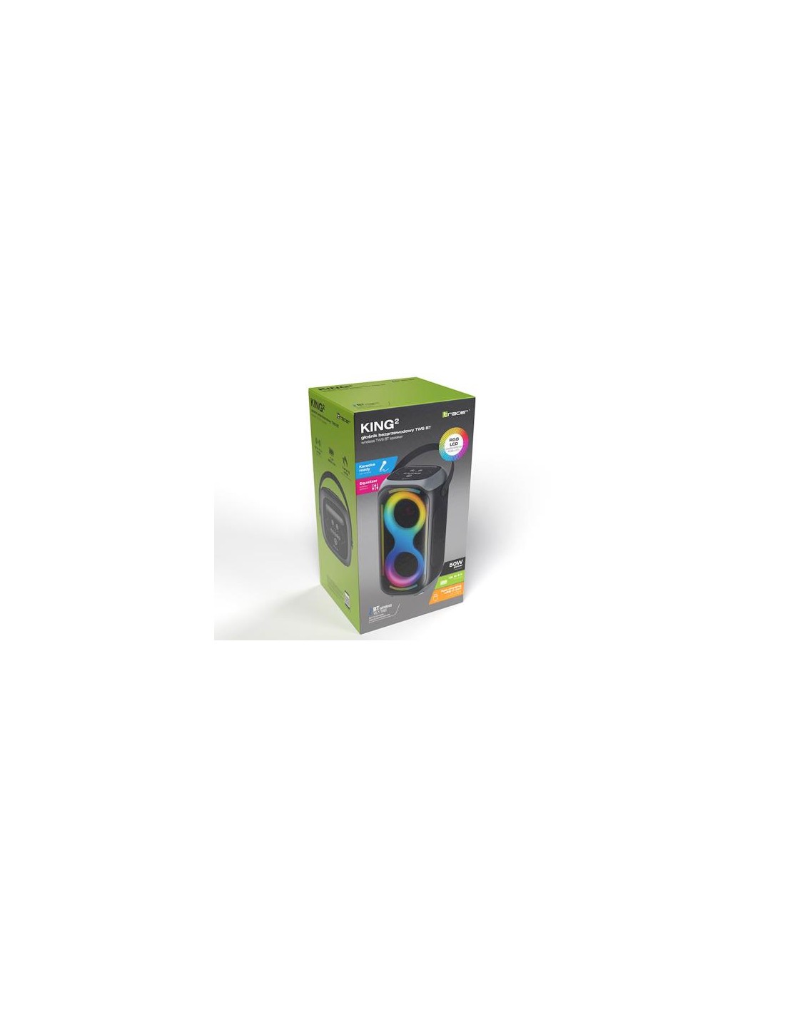 Iščete zvočnik, ki bo napolnil prostor z močnim zvokom in poskrbel za pravo koncertno vzdušje? TRACER Poweraudio King 2 BT TWS ni le naprava za predvajanje glasbe – je šov, ki bo vsako zabavo naredil nepozabno. Z dvema 5” nizkotoncema in dodatnim 1,5” zvočnikom TRACER Poweraudio King 2 BT TWS ponuja globok bas, čiste vokale in polno zvočno izkušnjo. Popoln je za domačo zabavo, piknik, vrtno druženje ali sproščen večer z glasbo. Bluetooth 5.1 zagotavlja hitro in stabilno povezavo z vašo napravo. Želite še več moči? Uporabite TWS funkcijo in povežite dva zvočnika v brezžični stereo sistem. Priključite mikrofon in postanite zvezda karaoke večera – kjerkoli in kadarkoli. Zvočnik je pripravljen na spontano zabavo ali organiziran nastop. Mikrofon ni priložen. Barvna osvetlitev, ki se prilagaja ritmu glasbe, ustvari vizualno doživetje, ki dopolnjuje zvok. Povečajte atmosfero vsake zabave z dinamično svetlobno predstavo. Zmogljiva baterija omogoča do 8 ur neprekinjenega predvajanja – dovolj za celodnevno zabavo ali večerni nastop pod zvezdami. Pravi kralj med zvočniki, ki združuje moč, stil in svobodo. Vklopite svojo najljubšo glasbo, okrepite bas in uživajte brez omejitev. Idealno za: zabave, dogodke, piknike, karaoke, dom ali na prostem. Glavne značilnosti: •Bluetooth 5.1 – stabilna brezžična povezava •Moč: 45 W RMS – močan, jasen in poln zvok •Avtonomija baterije: do 8 ur – zabava brez prekinitev •TWS funkcija – združite dva zvočnika za stereo učinek •RGB LED osvetlitev – dinamična svetlobna predstava •Pripravljeno za karaoke – priključite mikrofon in zapojte •Zvočniki: 2 x 5” + 1 x 1,5” – za uravnotežen bas in čiste vokale
